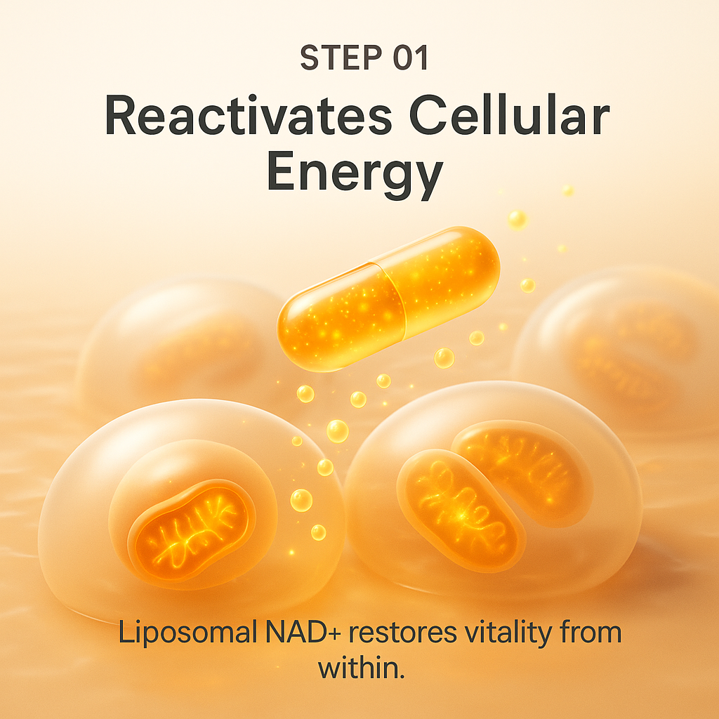 NMN (Nicotinamide Mononucleotide) - The most direct NAD+ precursor, clinically proven to boost cellular energy production and DNA repair.
