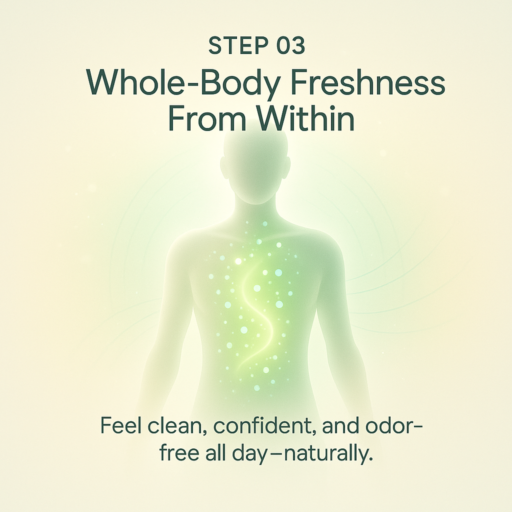 If the odor is still there after 60 days... If you're still checking yourself in the bathroom, still paranoid before getting close to someone, still anxious about down there no matter how consistent you've been... If you're still showering twice a day and it's still not enough, still avoiding the gym, still turning your head during conversations — we'll refund every penny. No returning bottles. No forms. No judgment.